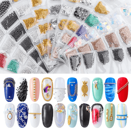 NailMePeriod's "Mixed Chain Japanese Korea Gold Silver Rose Metal Pearl Chain."
